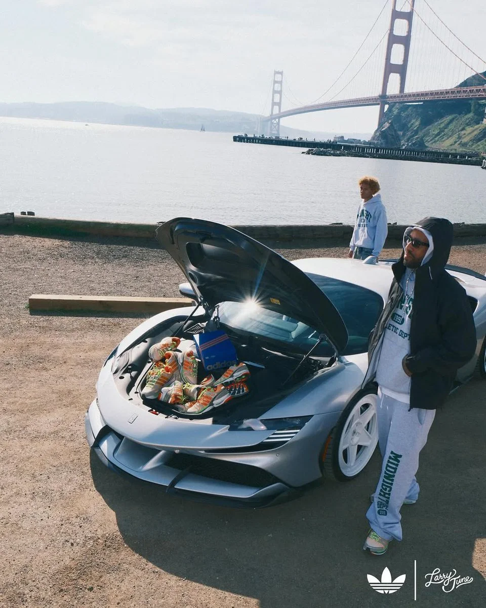 Props go out to adidas and Larry June on their new official collaboration with the Adistar Control 5. To roll out some of the photography on the same week that the Super Bowl touched down in The Bay was a straight chef’s kiss to everybody watching. The first piece of content that hit me was the boxes of sneakers riding shotgun as Larry stacked more inside the whip. Then he shuts the door, gets in, and drives off in his silver Ferrari. all you can say after seeing that is…. #numbers.