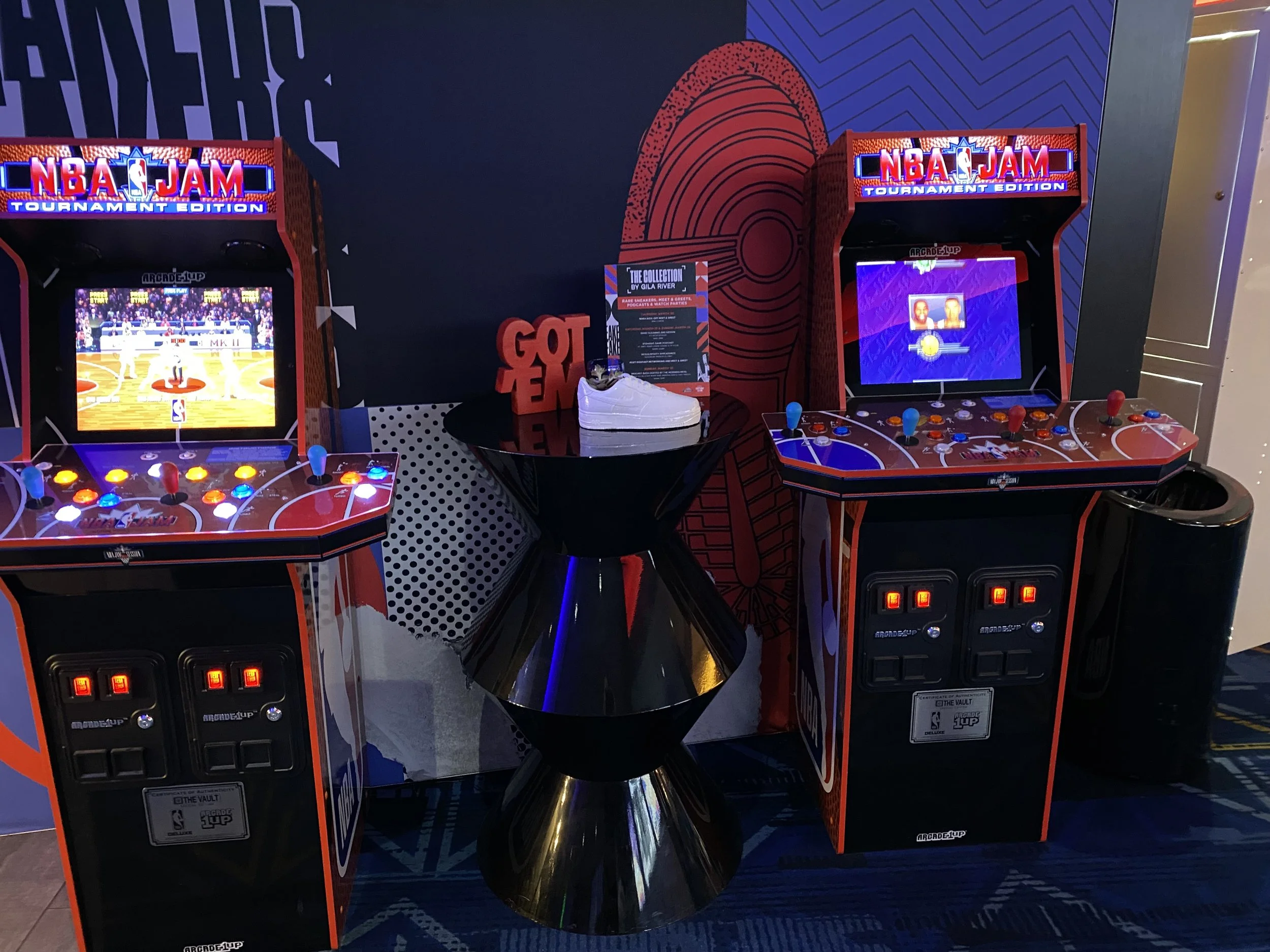 After walking past the two NBA JAM cabinet arcade games, you are met by the cornerstone of the exhibit. In the middle of the restaurant, a huge screen is surrounded by LED lit lockers full of hype shoes. The shoes is this section aren’t from Bibby’s collection, but shoes on display from Guest List. Guest List is a sneaker shop in Arizona Mills Mall and in Scottsdale. Guest List recently hosted the Devin Booker sneaker exhibit and they are absolutely crushing the streetwear scene with their own line of incredible apparel. Owner Ryan Gizinski is making big waves in the streetwear space and it is just a matter of time before his name is know across the nation.