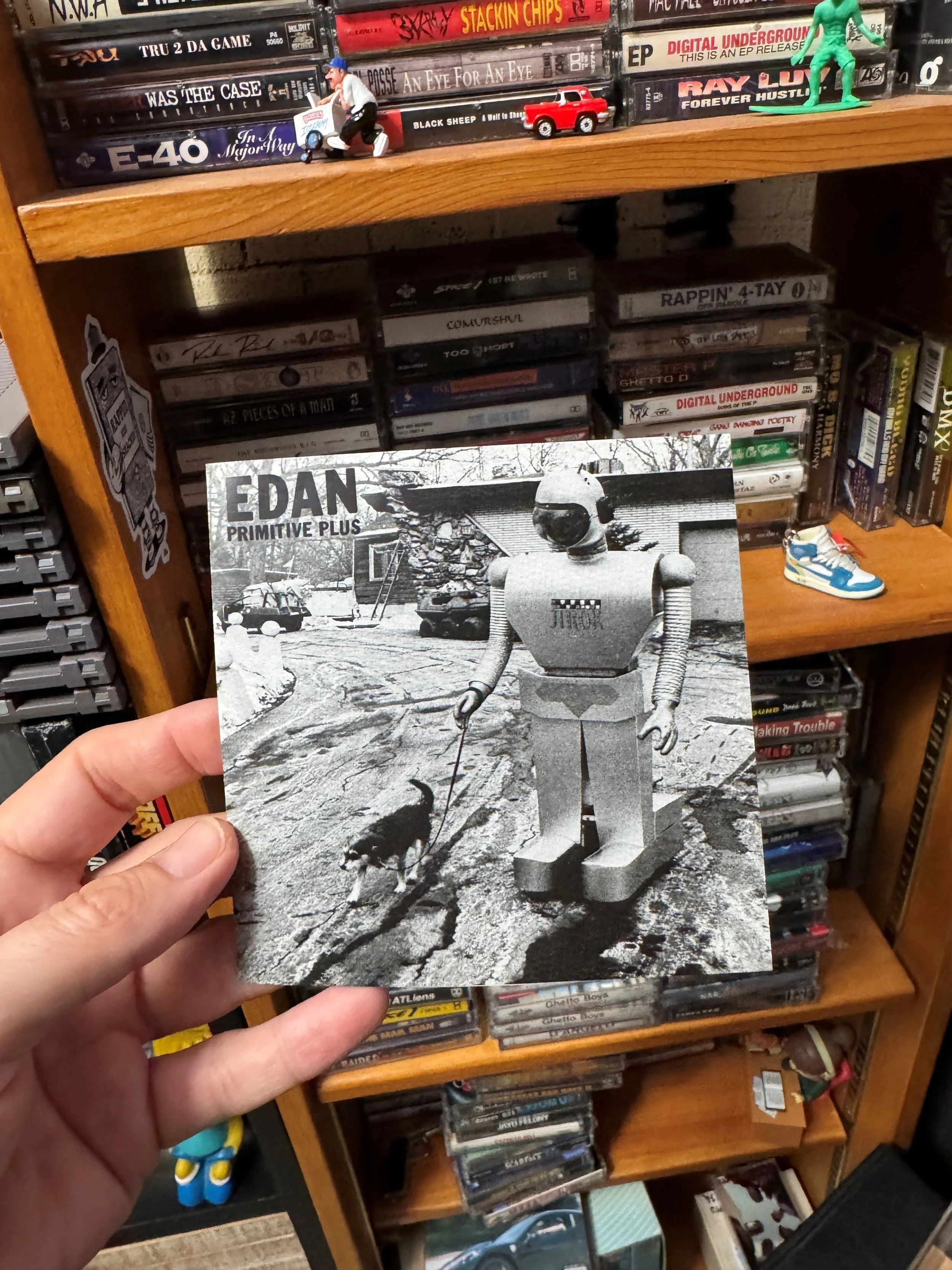 after hearing a few tracks, i looked through my collection of cd’s to find ones i was cool with selling to get some cash to buy another edan cd. i needed any edan i could get my hands on and fam… i had no idea what he looked like because… well… IT DOESN’T MATTER. i kept listening to my new edan cd and now ordered sprain your tape deck on cd so had around 1 - 2 weeks before i grew my edan collection.